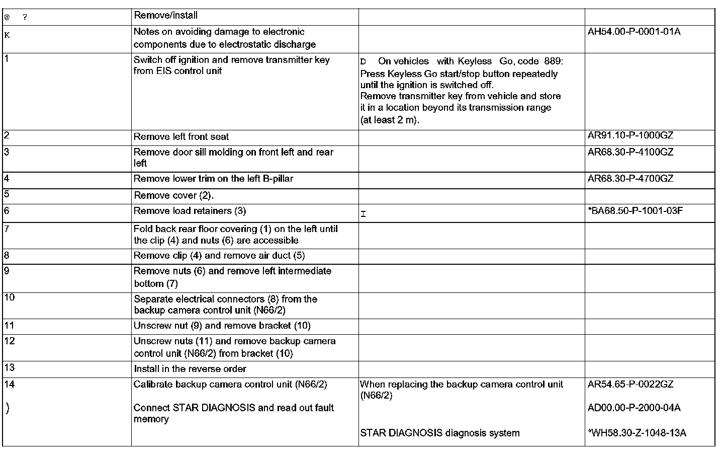 AR54.65-P-0025GZ Remove/Install Backup Camera
