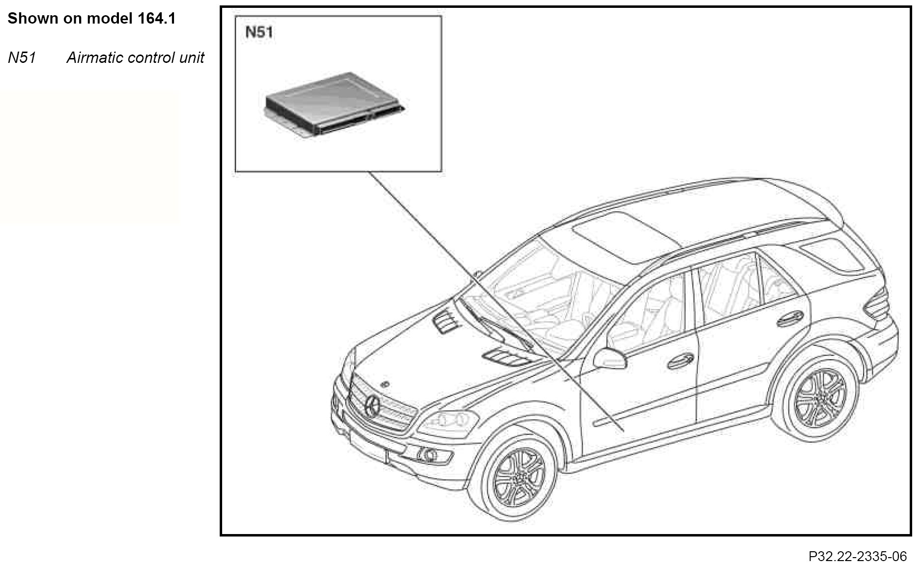 The AIRmatic control unit is used to control the chassis dampers, the chassis suspension and the vehicle level depending on vehicle dynamics and driver requirements.