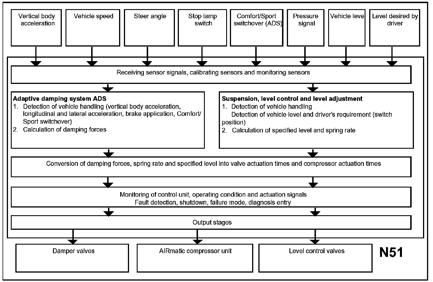 The functions of the AIRmatic control unit are divided as follows: