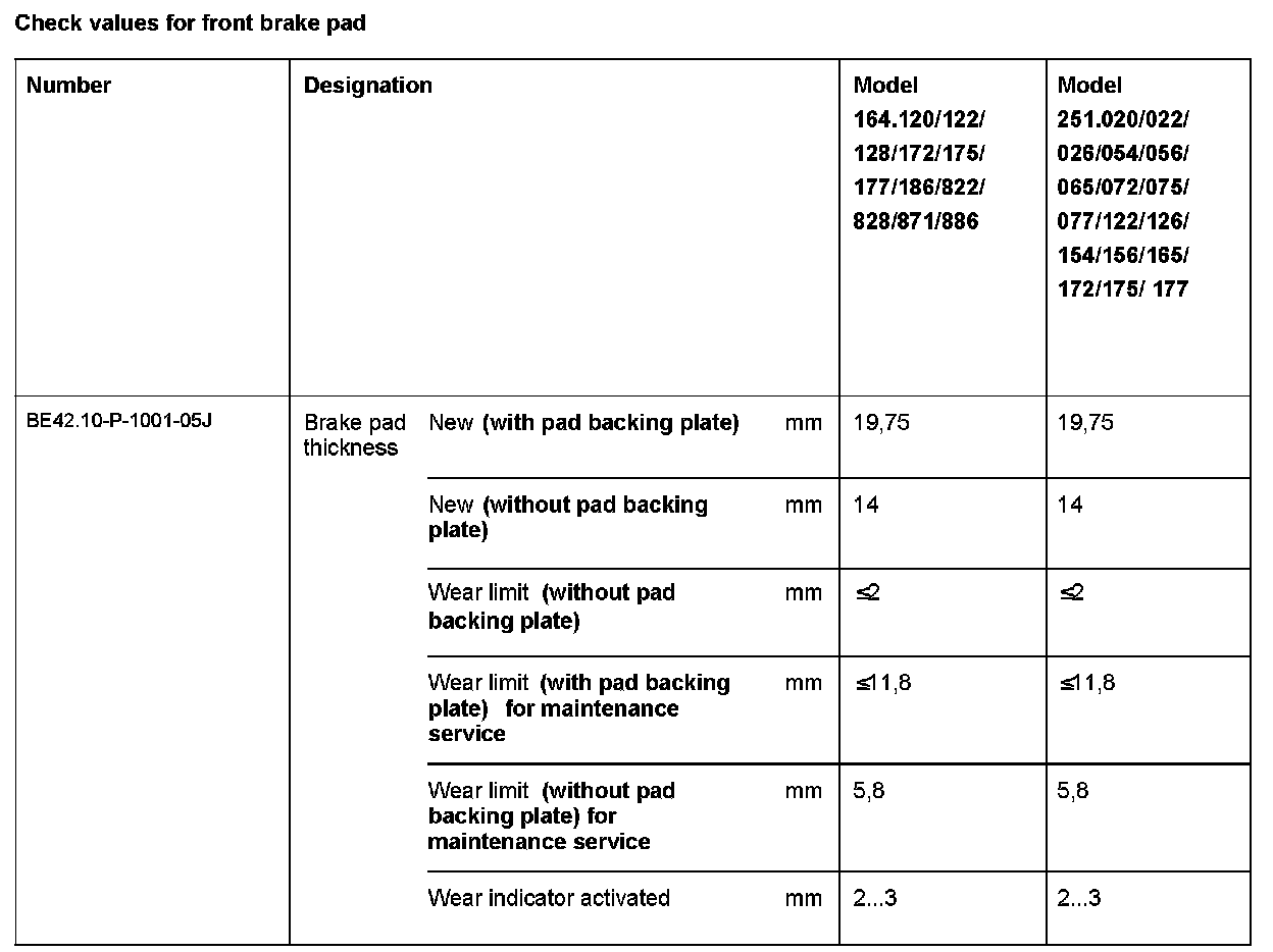 BE42.10-P-1000-05J Check Values For Front Brake Pad