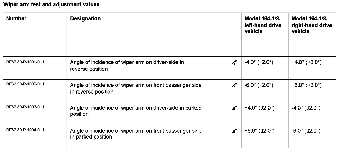 BE82.30-P-1000-01J Adjustment Values For Windshield Wiper
