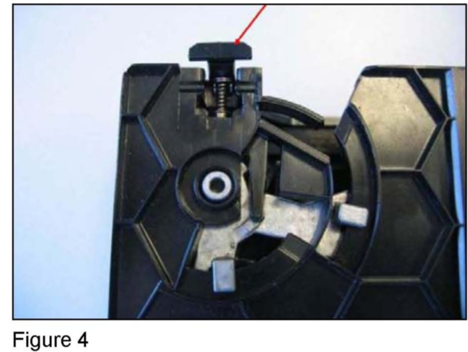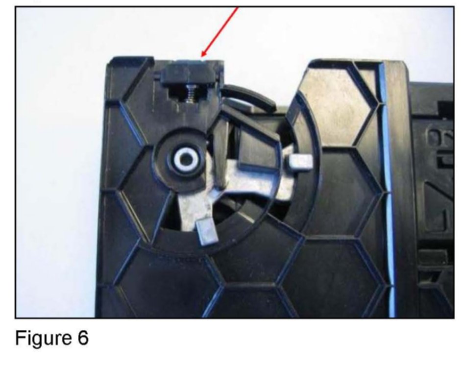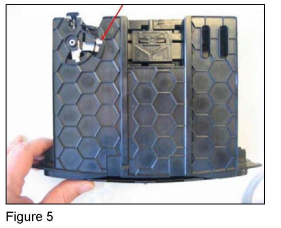 5. To reset crash lock, push in the storage compartment door and adjust crash lock tab to center point (Figure 5, Arrow).