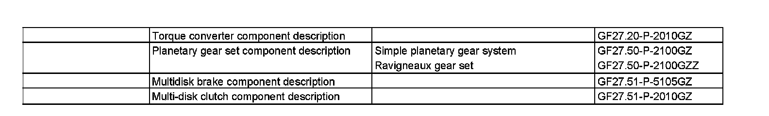 The rear single planetary gear set consists of the following components: