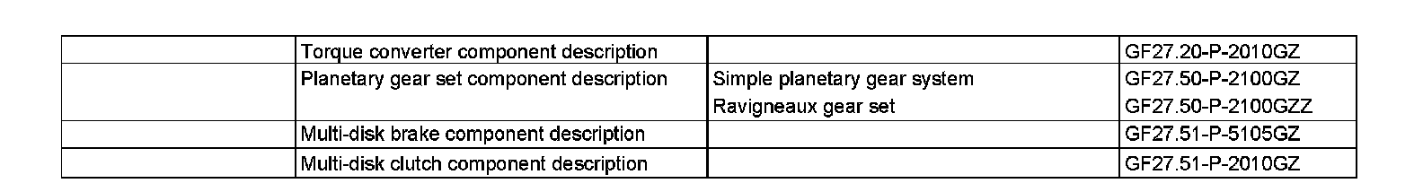 The front single planetary gear set consists of the following components: