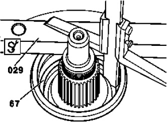 2 Using the depth gauge measure from the parallel support (029) to the contact surface of the grooved ball bearing (67) in the transmission housing.