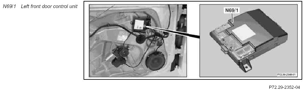 The left front door control unit is connected with the controller area network bus, class B (interior compartment) (CAN B) to exchange data and has the following purposes: