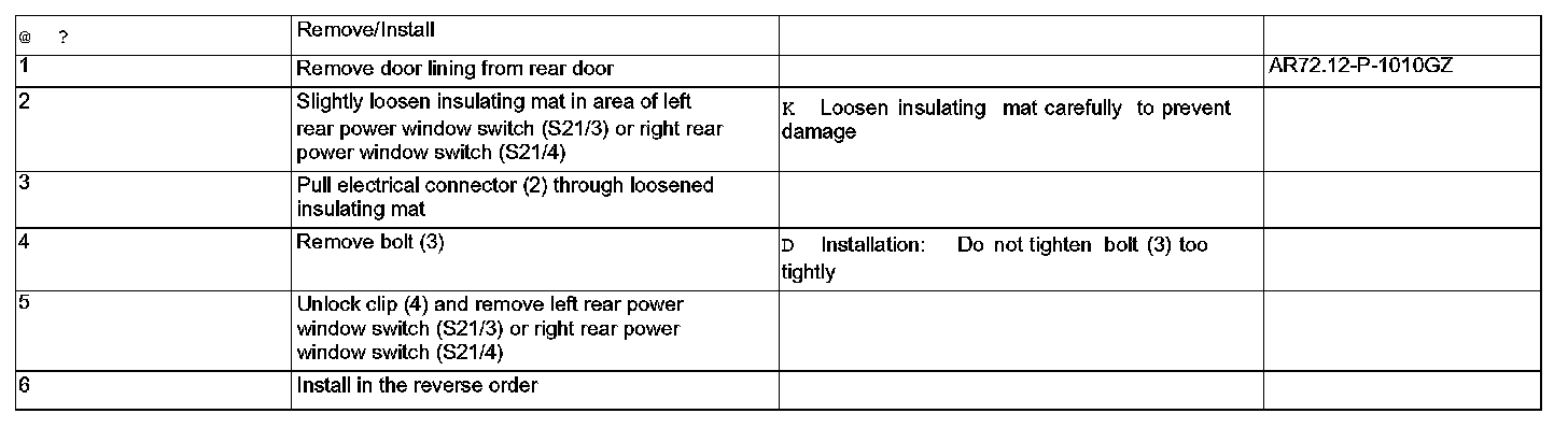 AR72.29-P-0002GZ Remove/Install Switches For Rear Door Power Windows