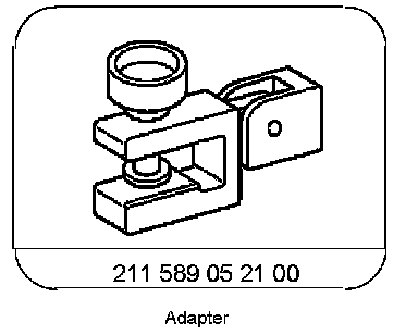 4 Slide adapter "E" together with the angle gauge (5) onto the wiper blade mounting of the driver-side wiper arm (1) and clamp in place using the knurled screw.