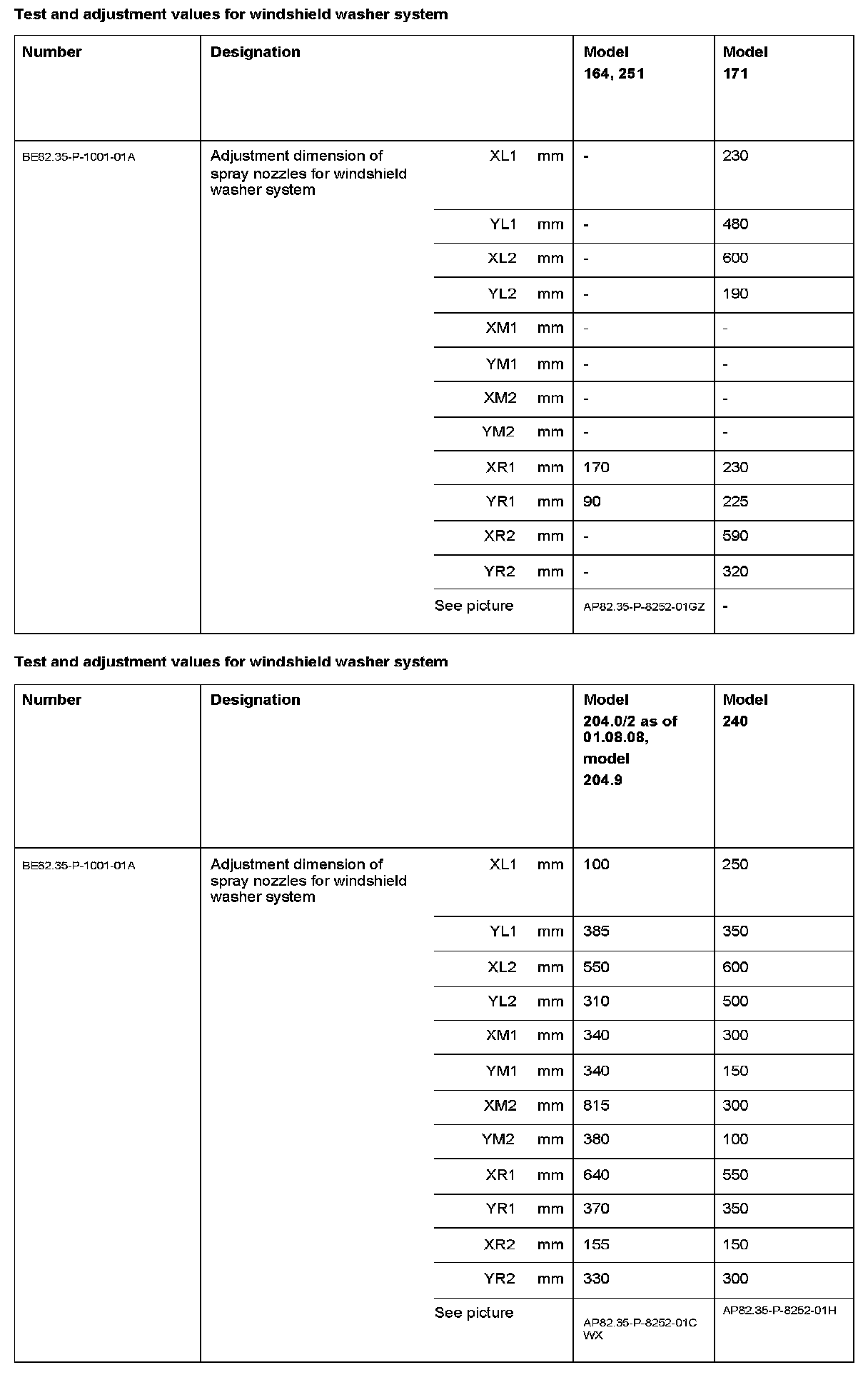 Test And Adjustment Values For Windshield Washer System:
