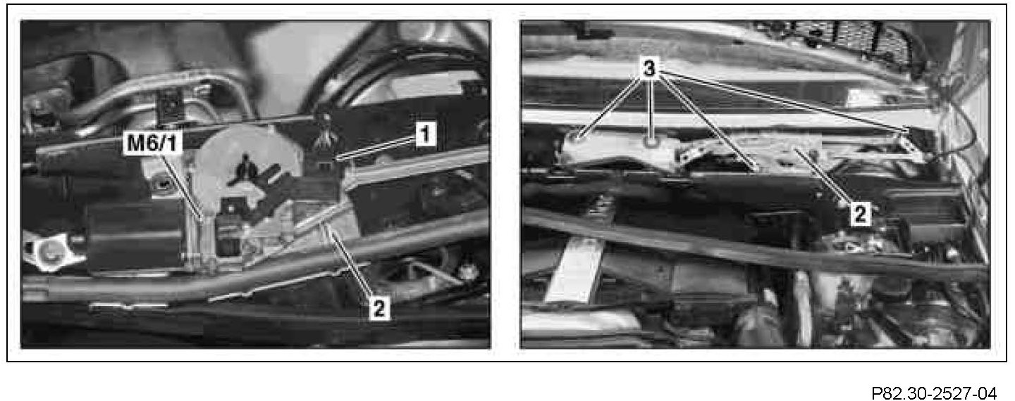 1 Plug the electrical connector (1) into the wiper motor (M6/1).