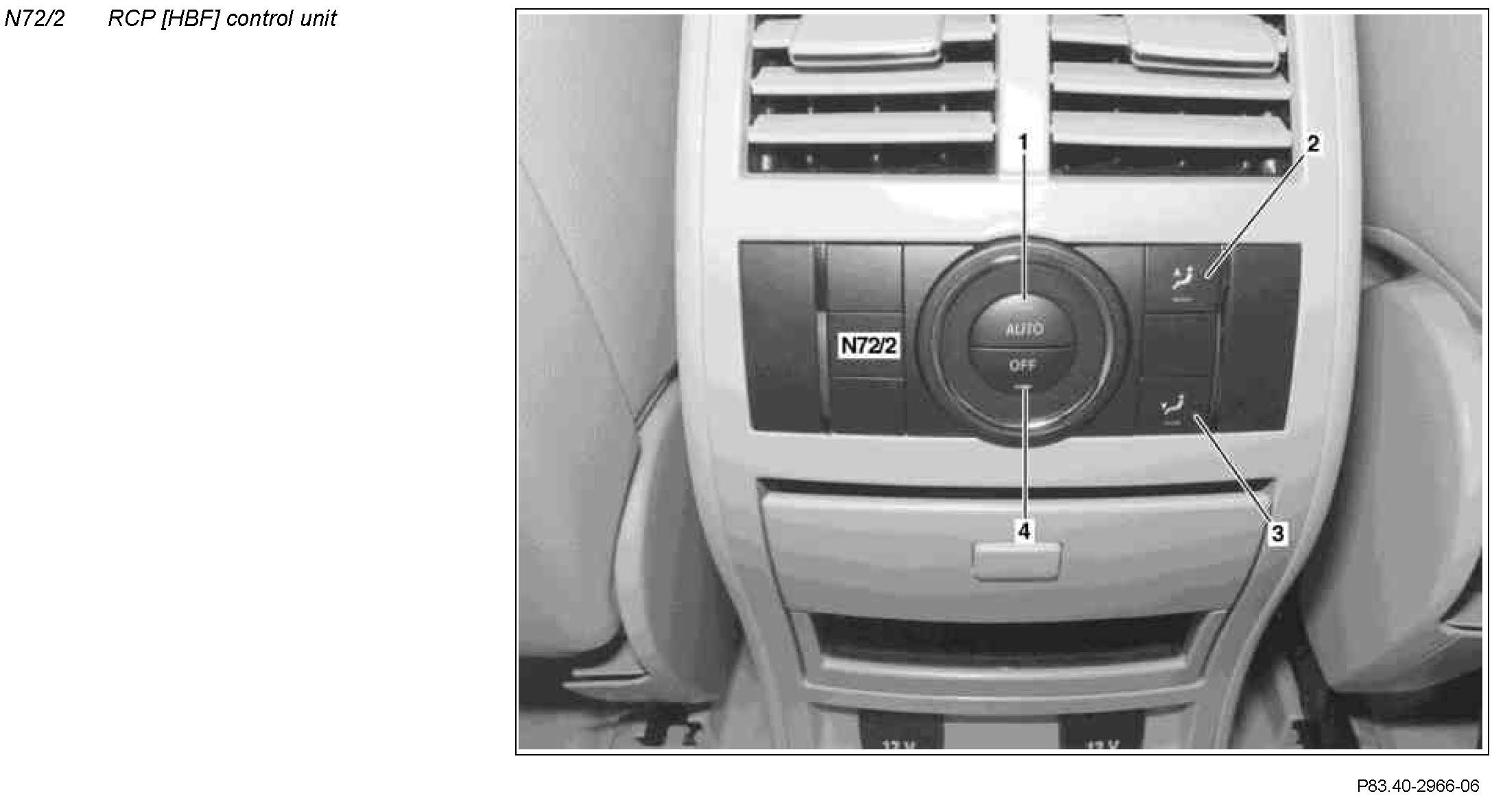 The RCP control unit is located in the extension of the center console for the 2nd seat row.