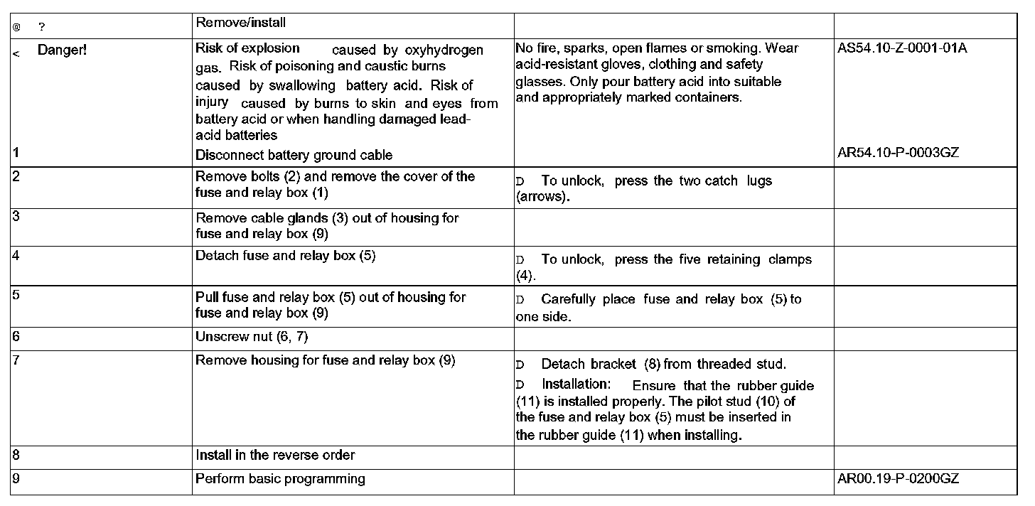 AR54.15-P-1259GZ Remove/Install Housing For Fuse And Relay Box