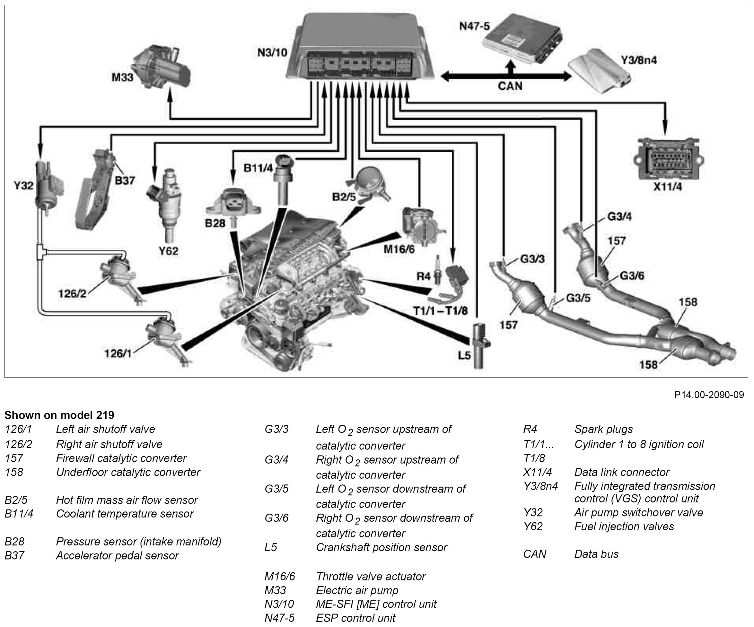 A calculated air mass value of the of 165 kg/h is used by the engine control unit to determine the injection time (fuel injection quantity).