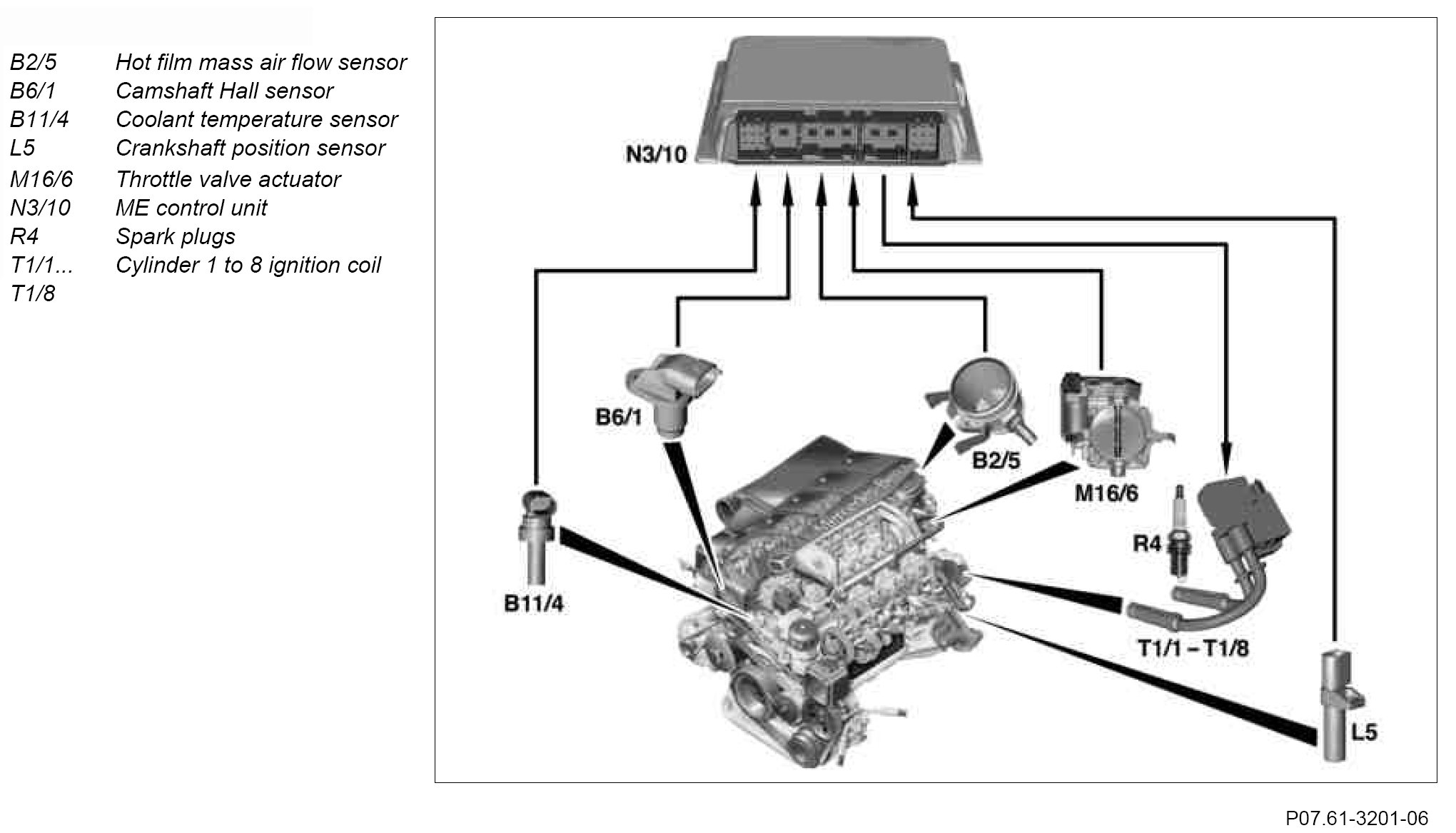 This is achieved by ensuring that the throttle valve is no longer opened fully. The air mass drops accordingly and less fuel in injected.