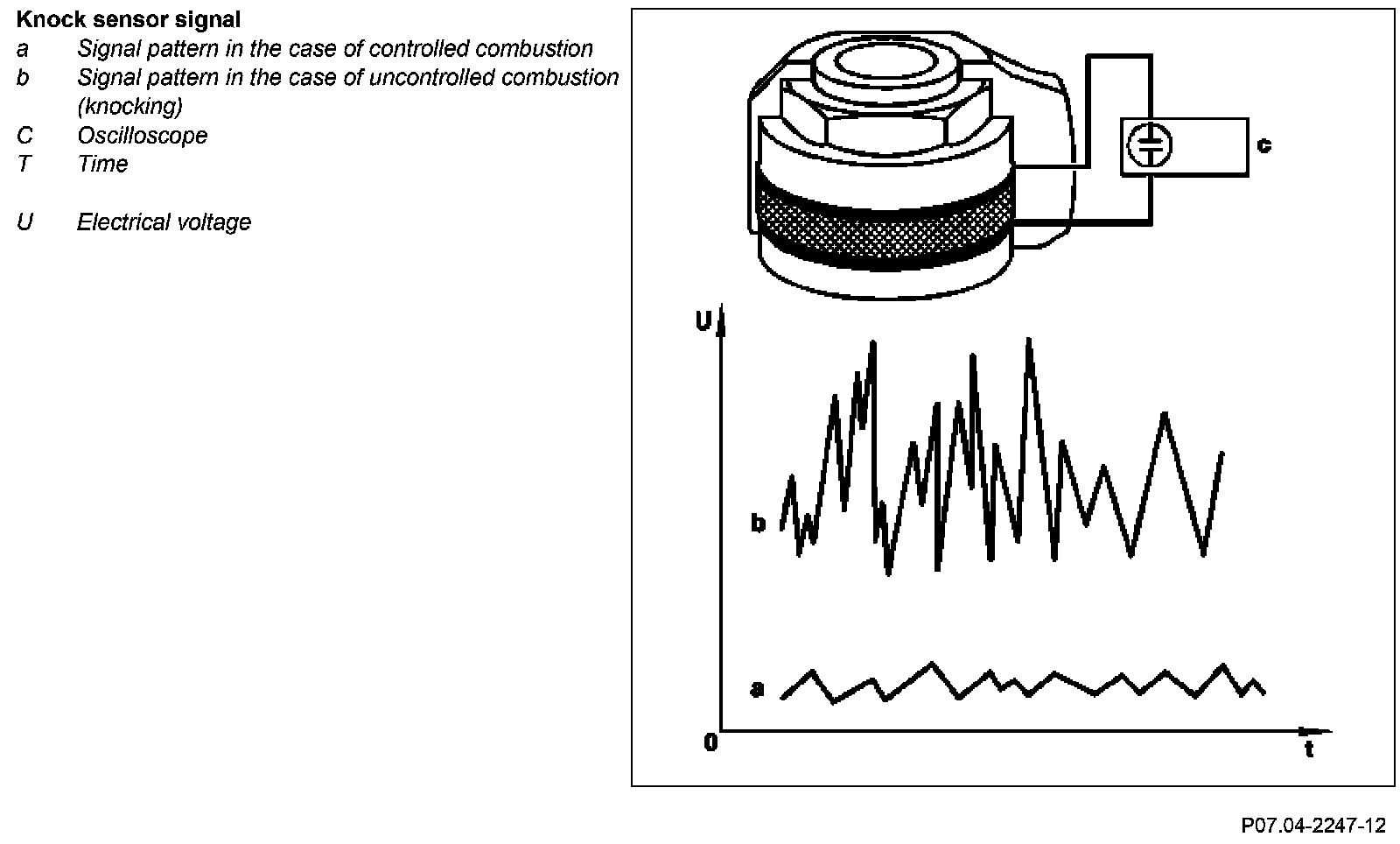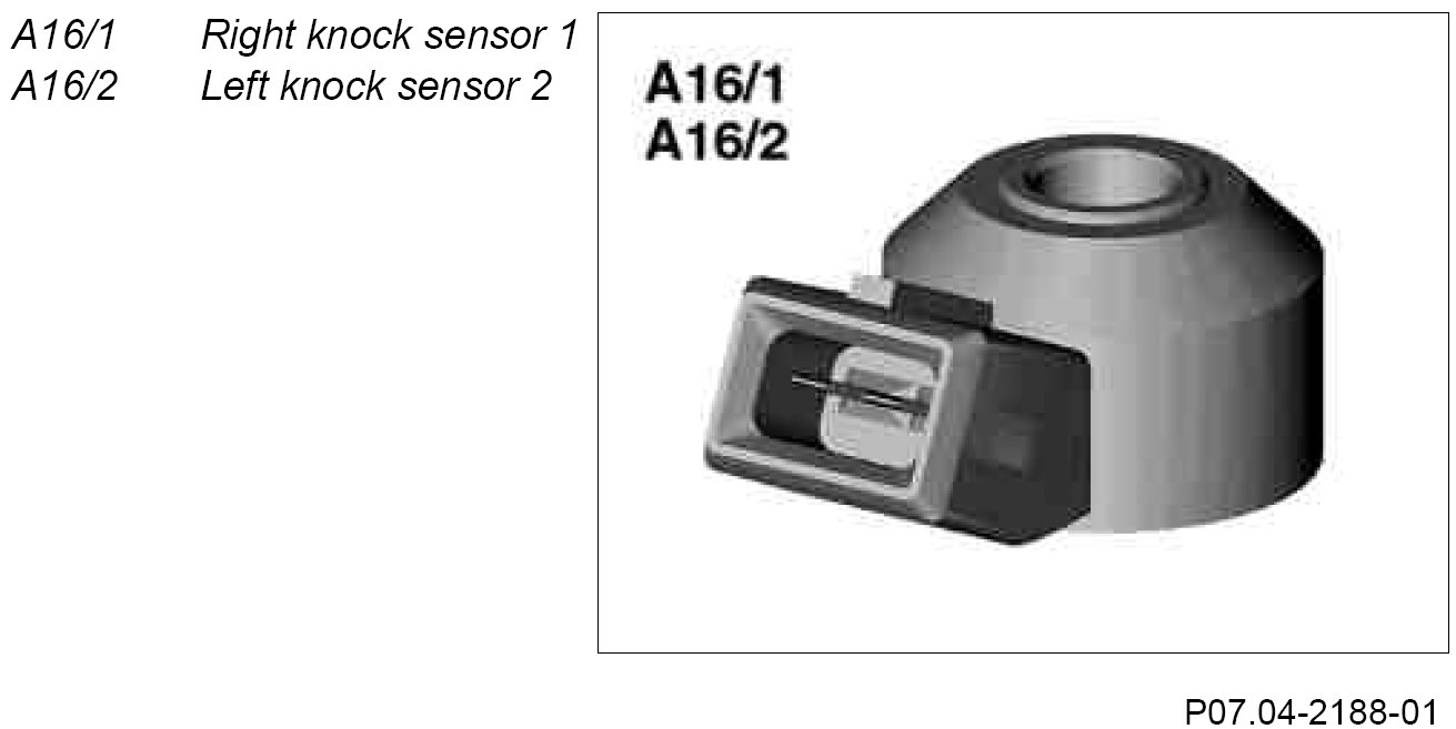 Any vibrations which occur are converted with the aid of the piezo ceramic into electrical signals. The noise signal is modulated to a DC voltage from 0.13 V to 4.7 V for transmission to the ME control unit.