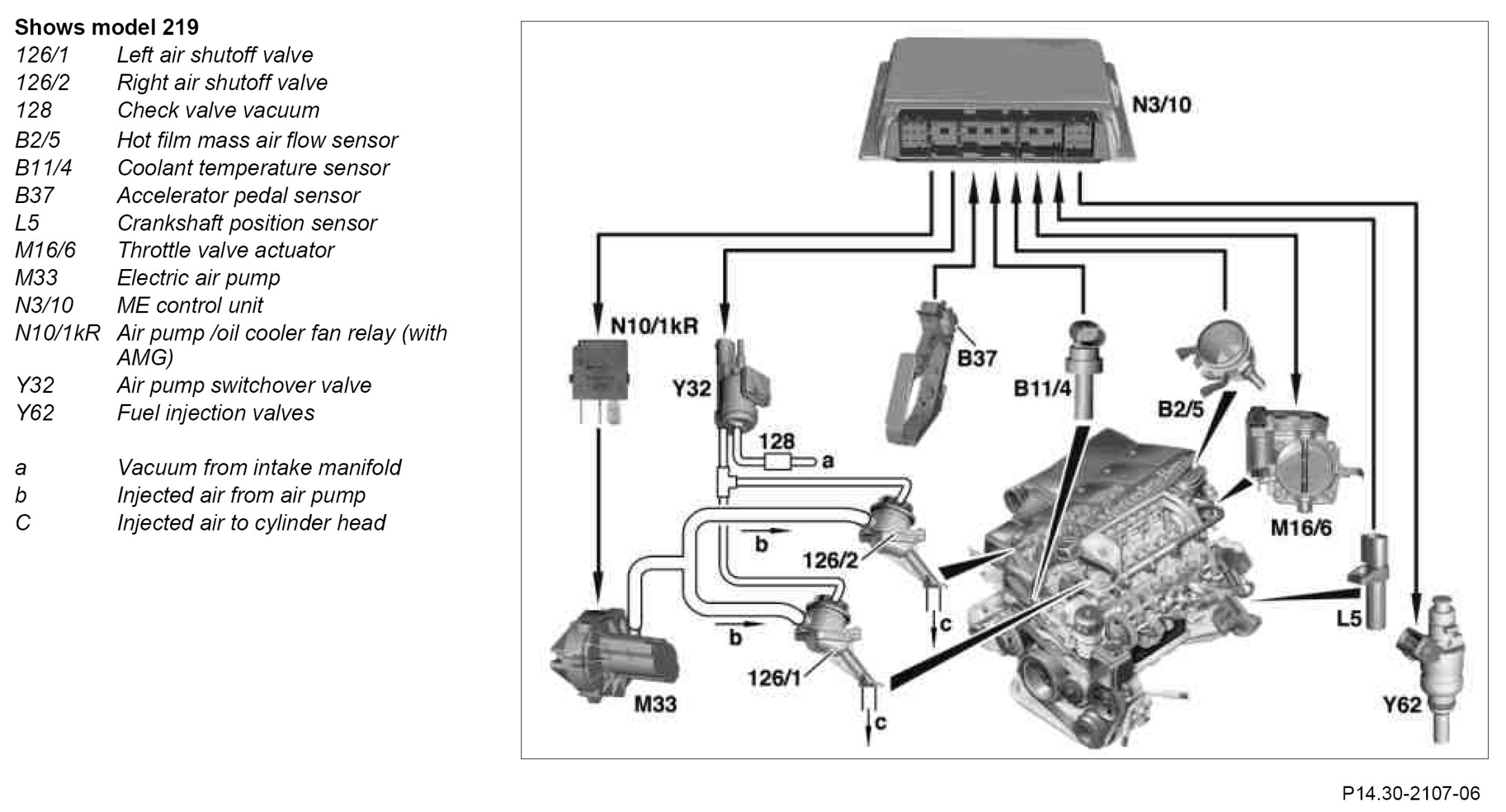 Air injection may be actuated deliberately using STAR DIAGNOSIS for a maximum of 2 minutes. Prior to the next actuation, it is essential to maintain a cooling time of 30 minutes, otherwise the air pump may be damaged.