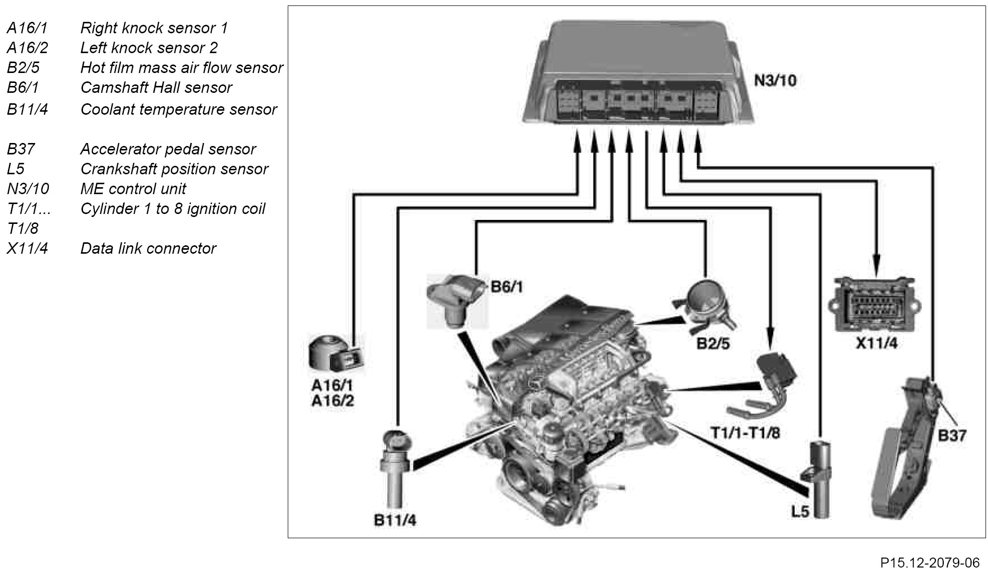The ME-SFI control unit essentially analyzes the following signals for determining the ignition angle: