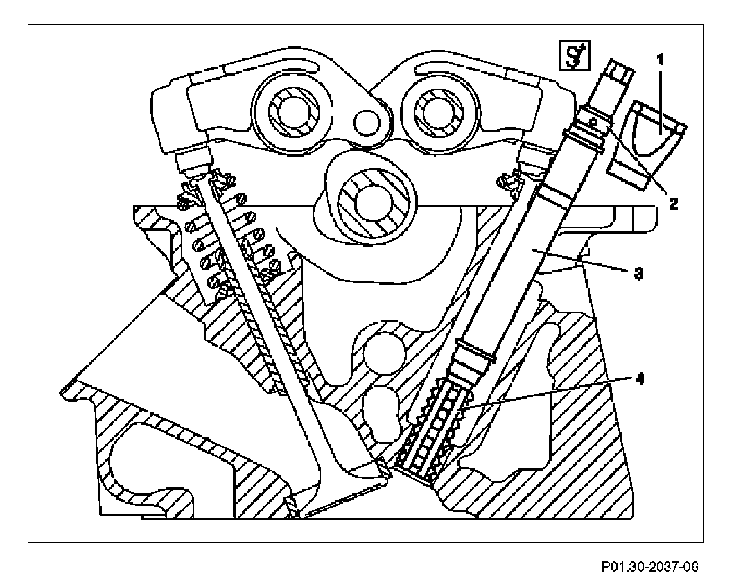 Screw out after 5 revolutions on removed cylinder head combination tap (4), clean the swarf grooves from swarfs and grease, refill with grease and finish cutting thread. After cutting.