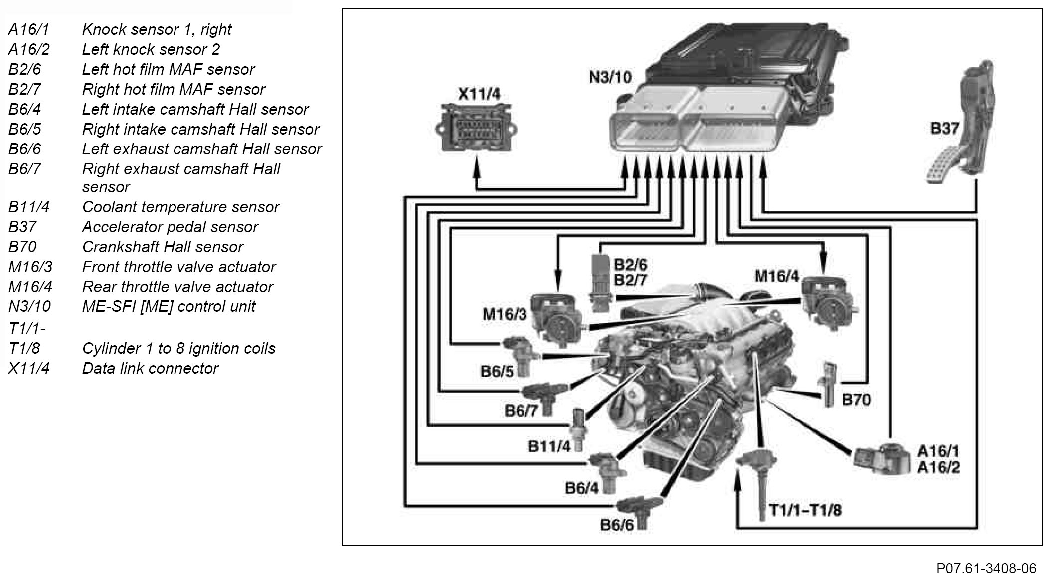 For this purpose, if uncontrolled combustion (knocking) occurs, the ignition angle at the relevant cylinder or cylinders is retarded. The knock control is integrated in the ME-SFI [ME] control unit.