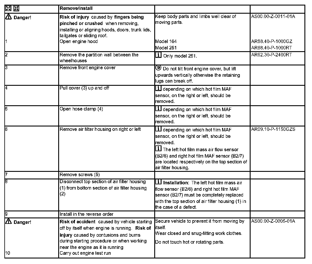 AR07.07-P-1453GZS Remove/Install Hot Film Mass Air Flow Sensor