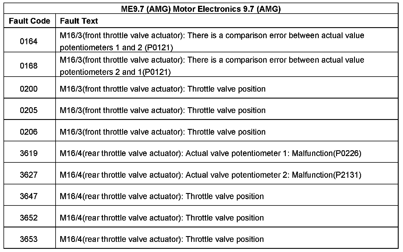 Fault Code Table