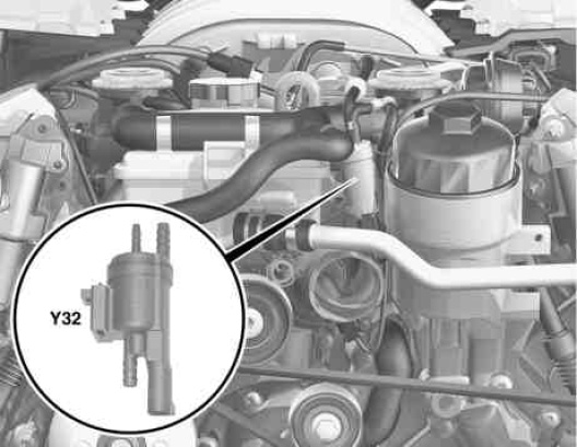 The switchover valve is located at the front of the engine to the right of the oil filter.