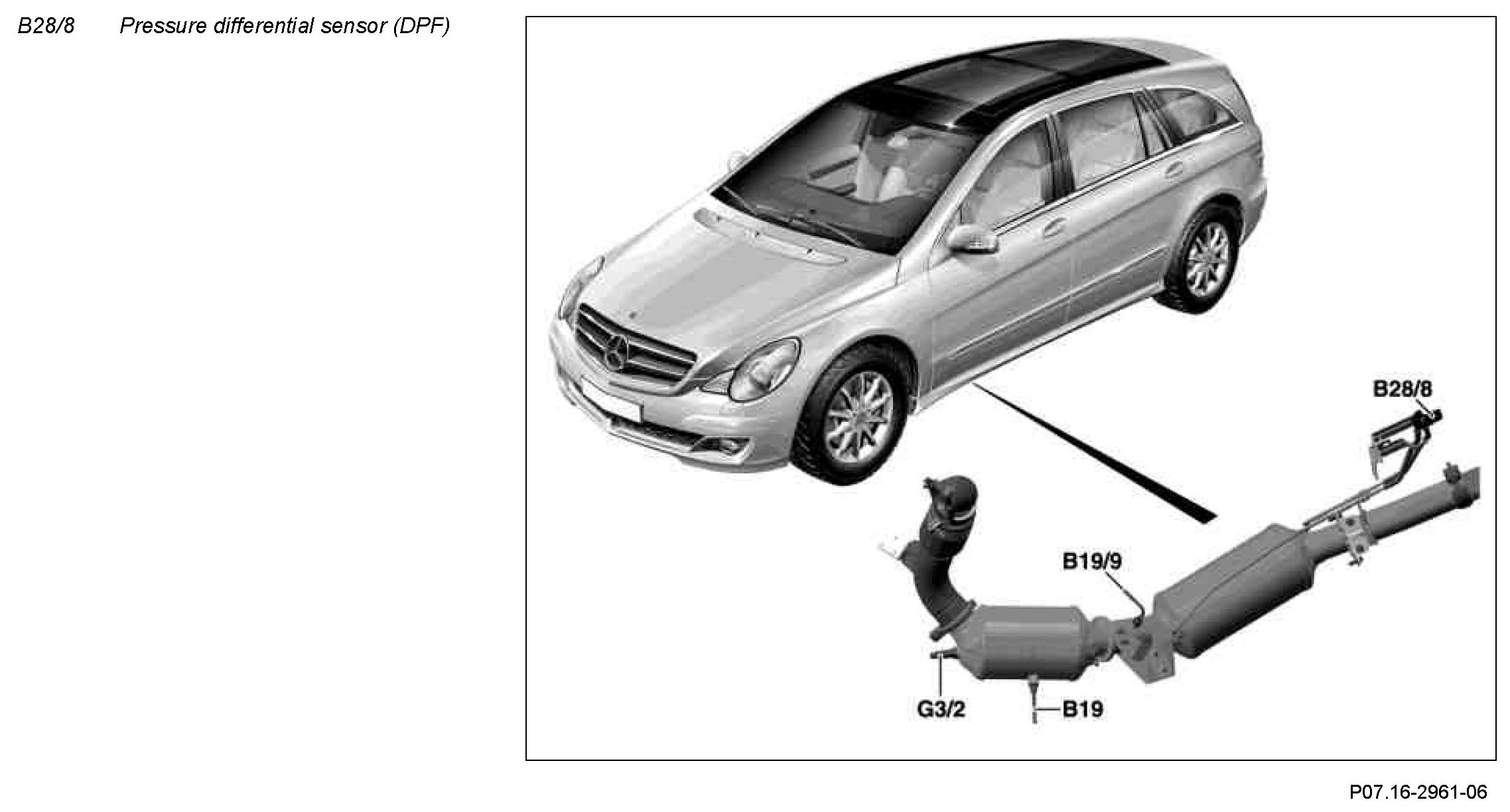 The CDI control unit (N3/9) determines the particulate matter (particles) (PM) and the ash loading of the DPF with the aid of the pressure differential.