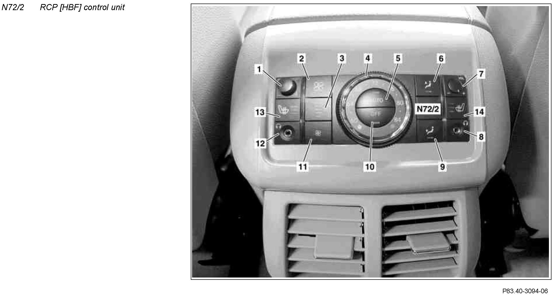 The HS [SIH], seat ventilation and steering wheel heater control unit (N25/7) is notified of the respective button signal via CAN-B by the RCP [HBF] control unit.