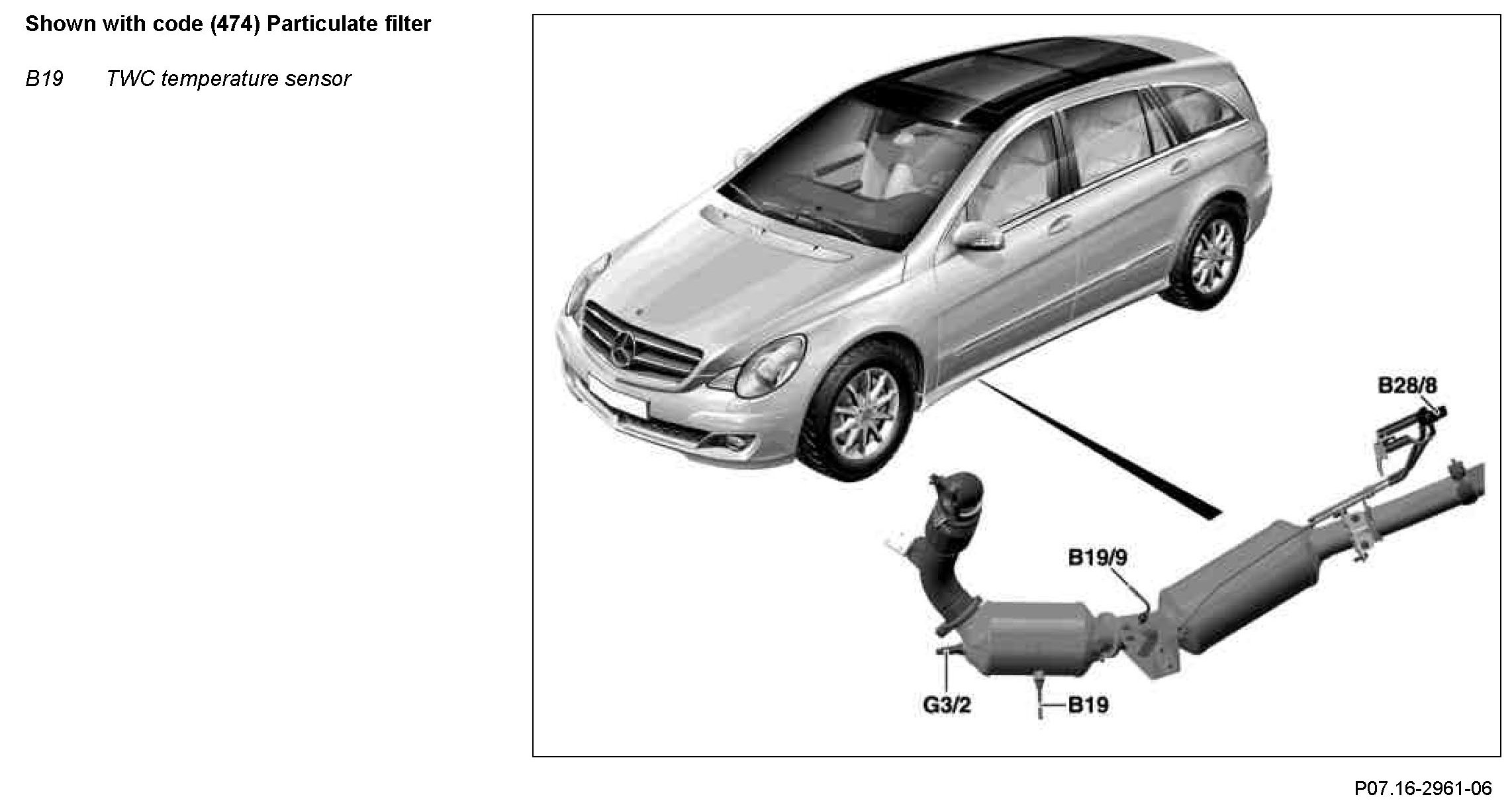 The TWC temperature sensor determines the current exhaust gas temperature upstream of the oxidation catalytic converter.