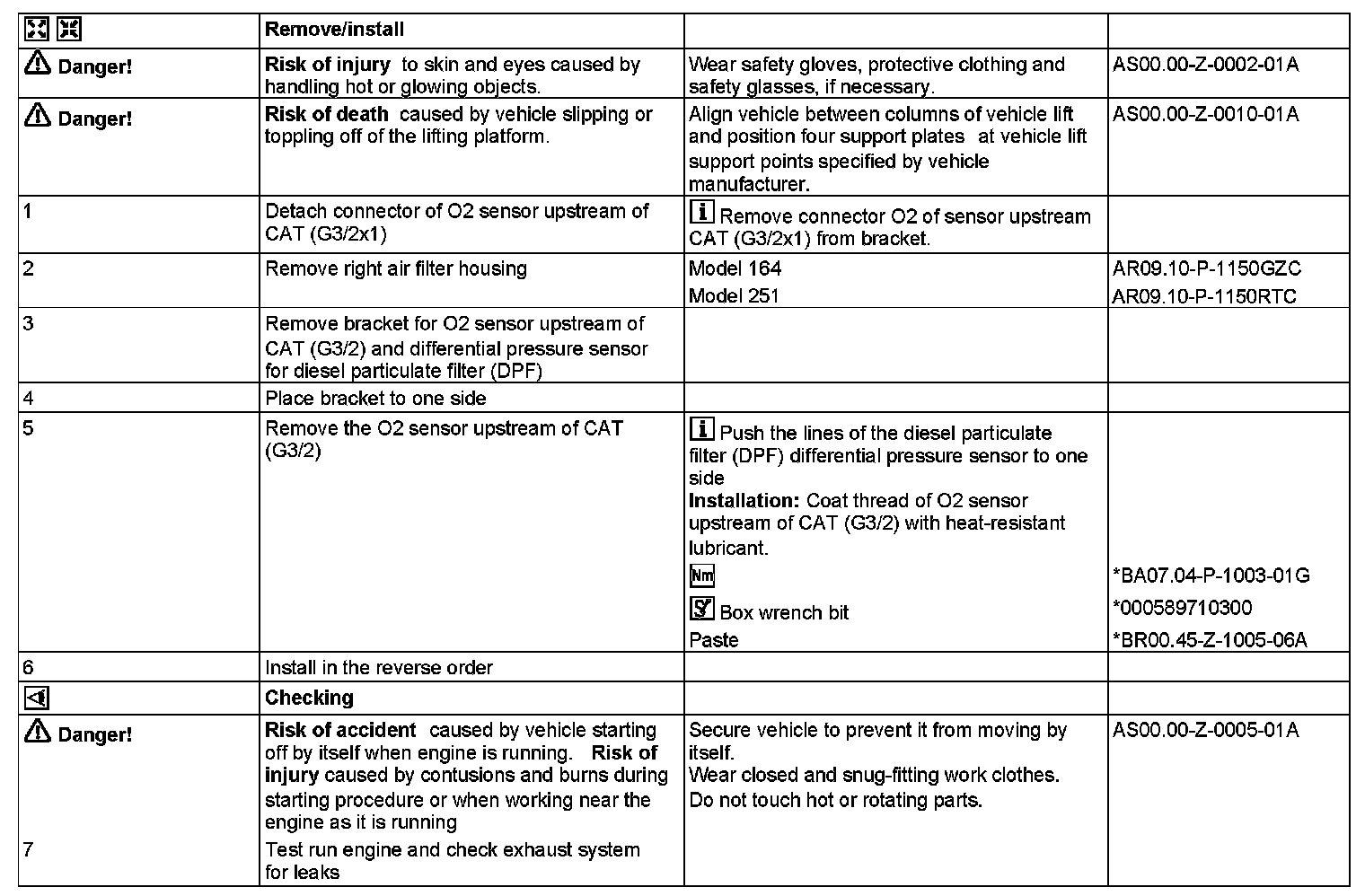 AR07.04-P-0080GZC Remove/Install O2 Sensor