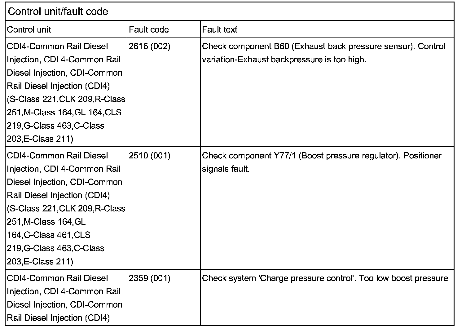 Control unit/fault code