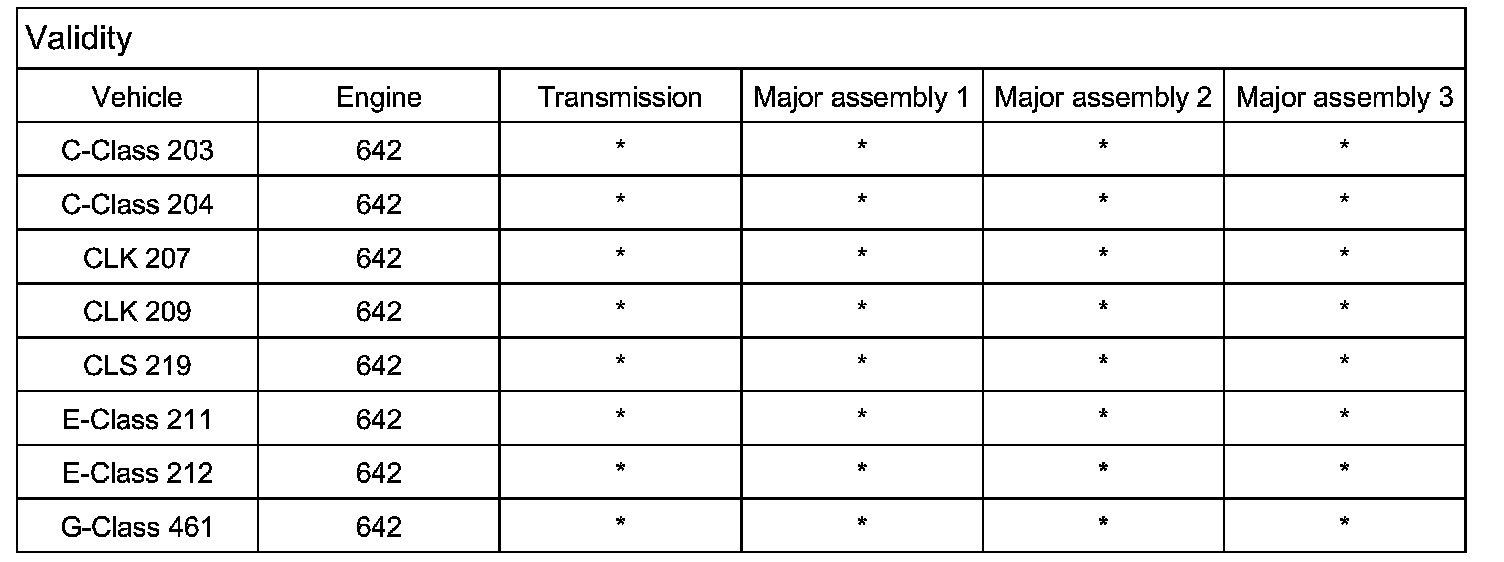 Validity Models 164, 203, 204, 207, 209, 211, 212, 219, 221, 251, 461, 463 with engine 642