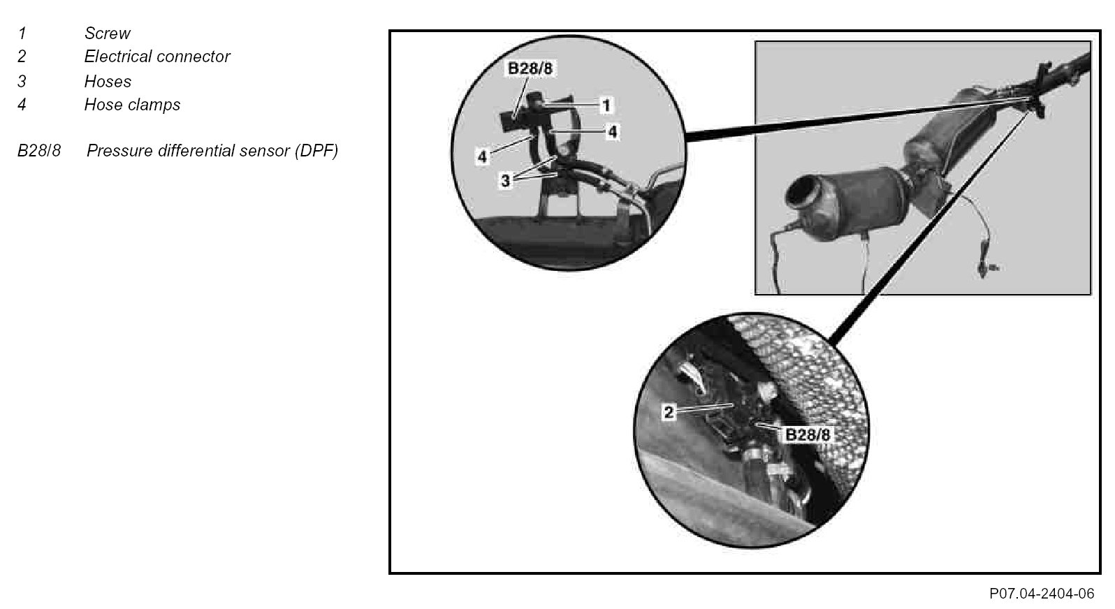AR07.04-P-0012GZB Remove, Install Pressure Differential Sensor (DPF)