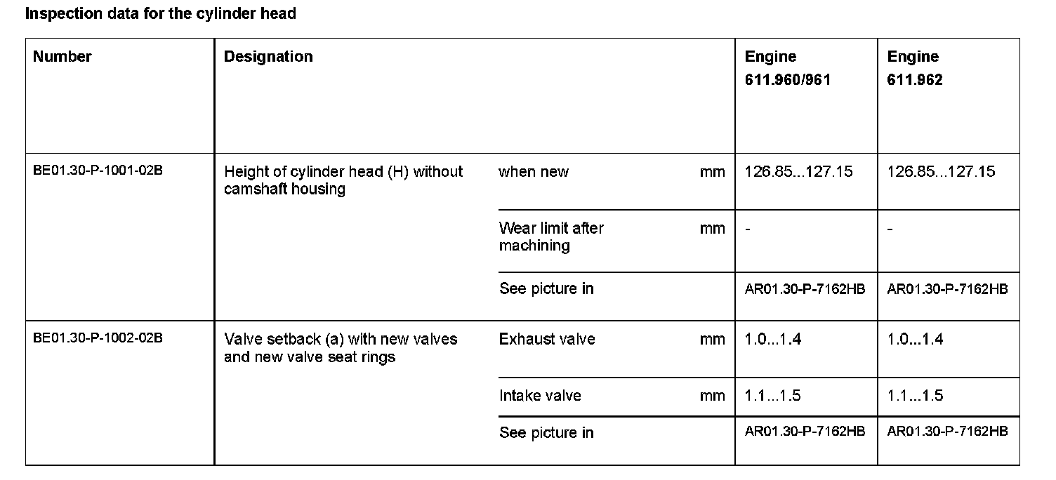 BE01.30-P-1000-02B Inspection data for cylinder headInspection data for the cylinder head:
