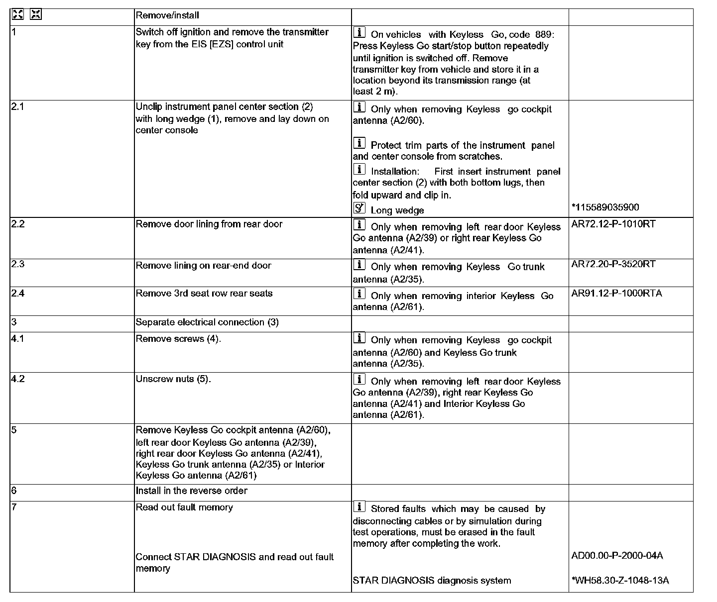 AR82.62-P-8000RT Remove/Install Keyless Go AntennaComponent Identification: