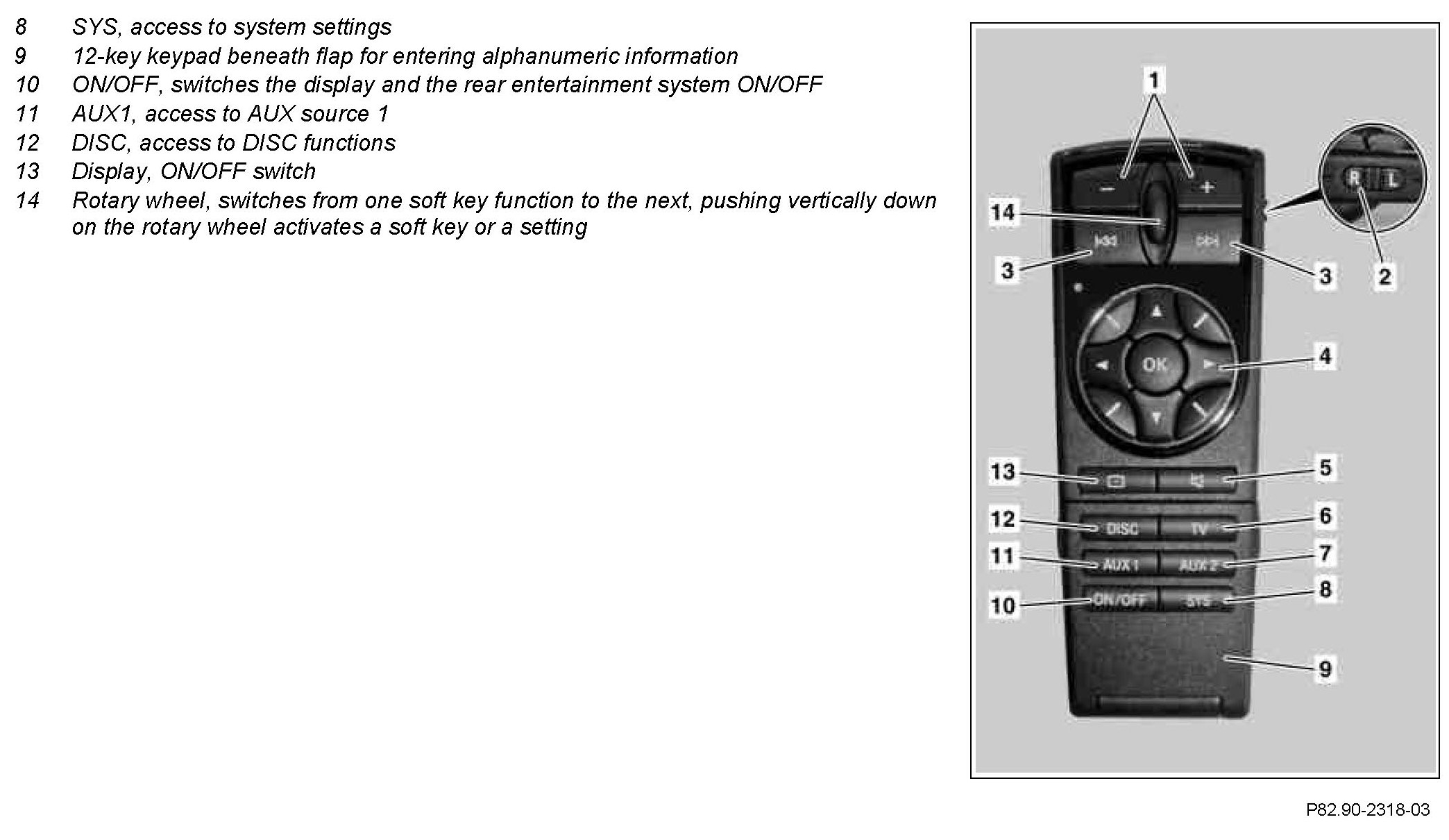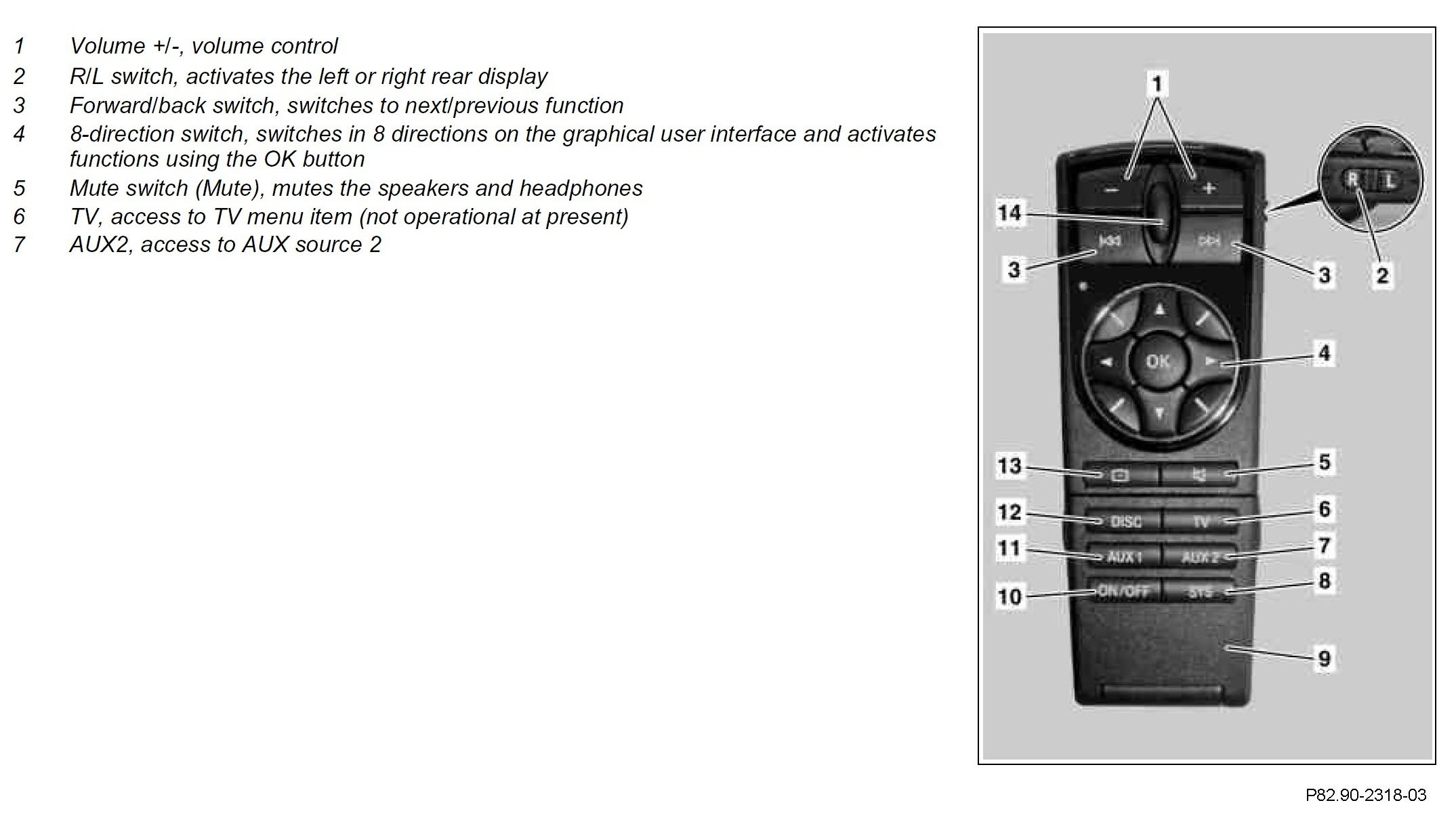 GF82.90-P-4022RT Rear Entertainment Remote Control Component Description