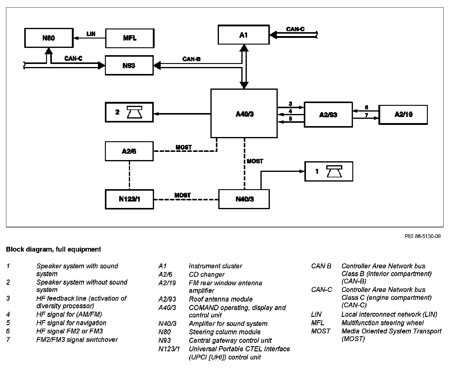 are sent digitally to the COMAND, operating, display and control unit over the Control Area Network bus, class B (interior compartment) (CAN-B).