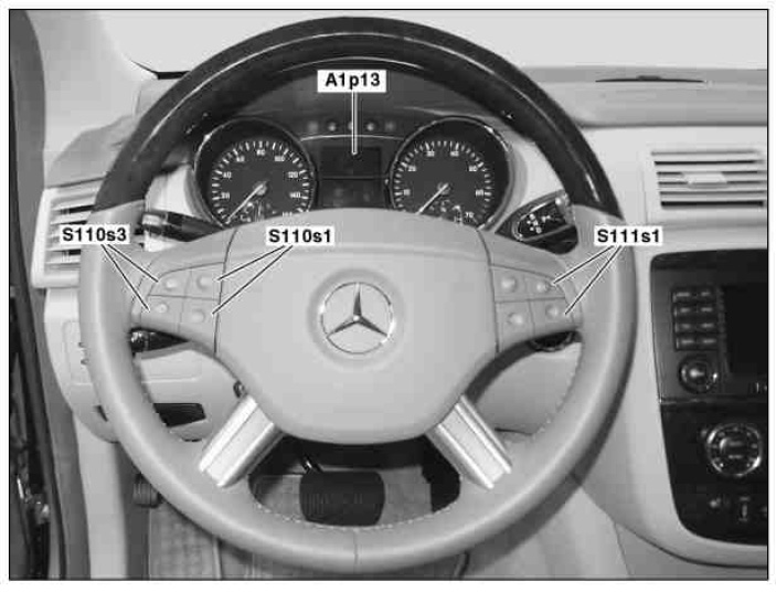 6 To activate easy entry/exit, press the button + and -, adjustment of specific functions and volume control (S111s1) repeatedly until "STEERING COLUMN" or "STEERING COLUMN+SEAT" is shown in the multifunction display (A1p13).