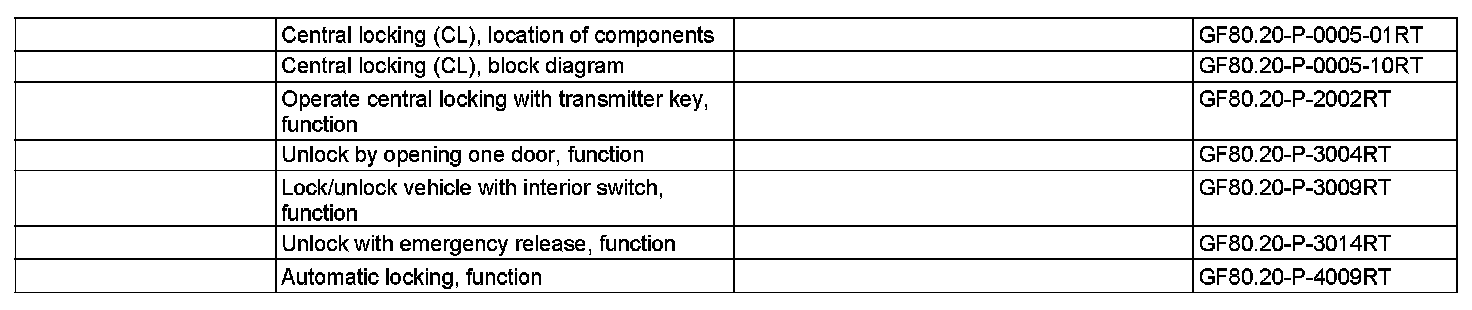 GF80.20-P-0005RT Central Locking (CL), Function