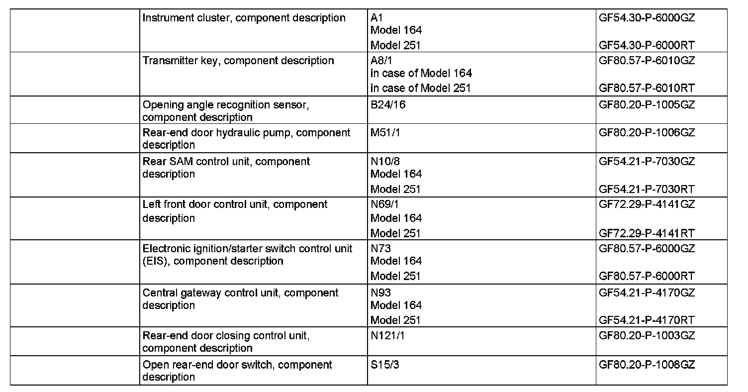 The open status of the rear-end door is indicated by an LED integrated into the rear-end door switch (up to 31.5.07). On vehicles as of 1.6.07 the LED is eliminated.