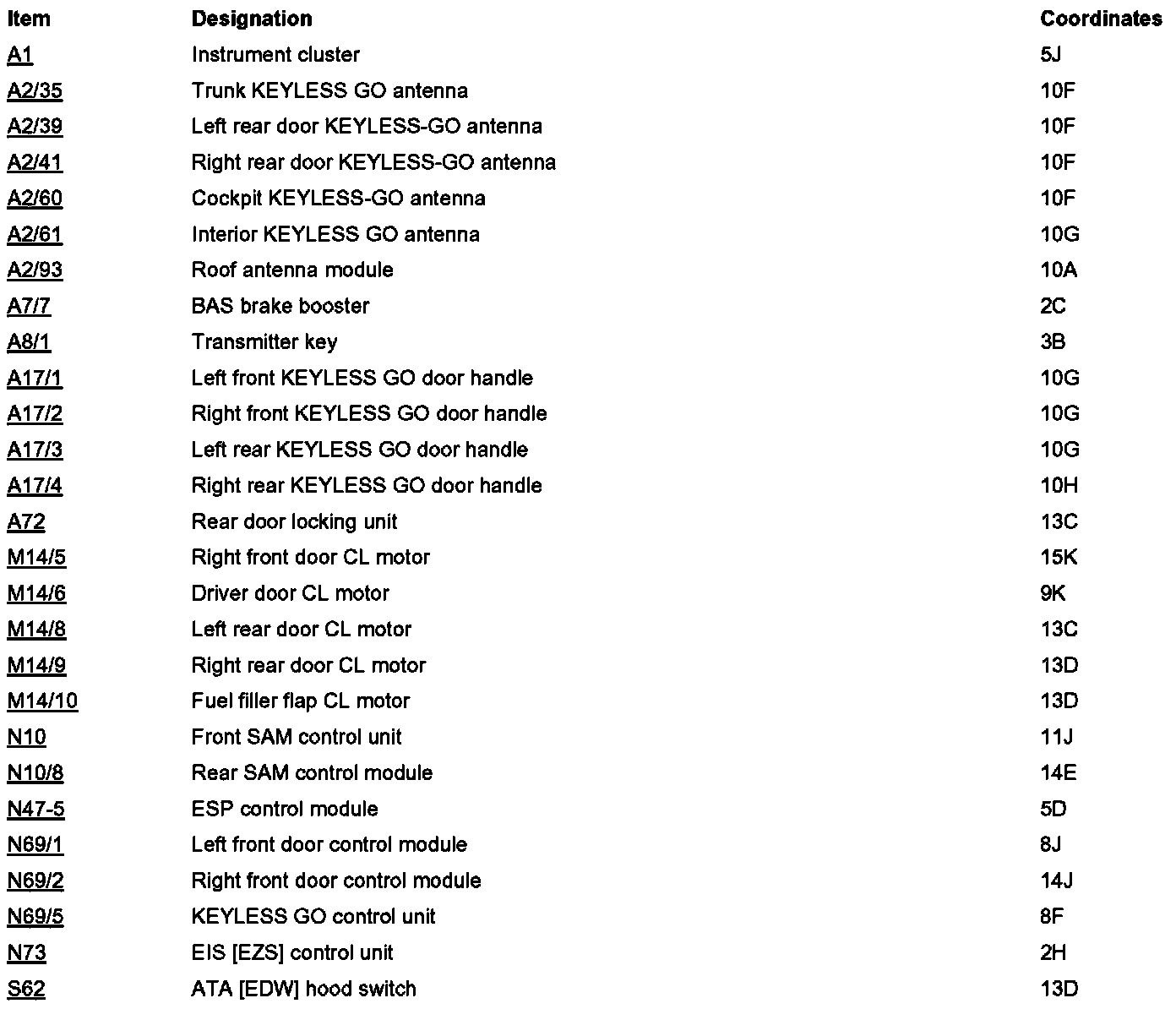 Component Locations: Component Location photographs can be found via their component names at the vehicle level. A - Z Component List
