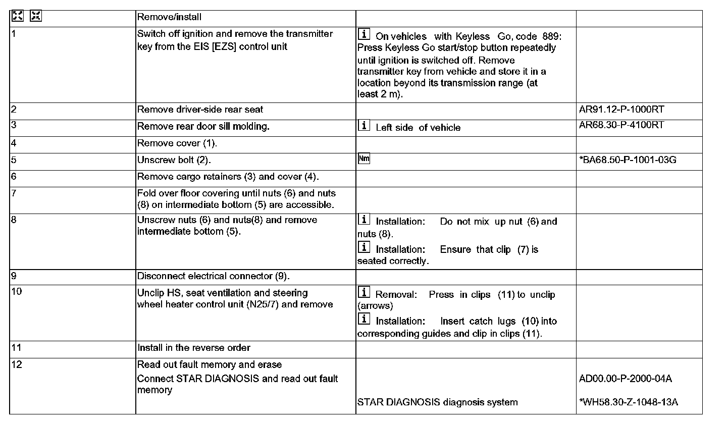 AR91.30-P-0002RT Remove/Install Control Unit For Electrically Heated Left and Right Rear Seats