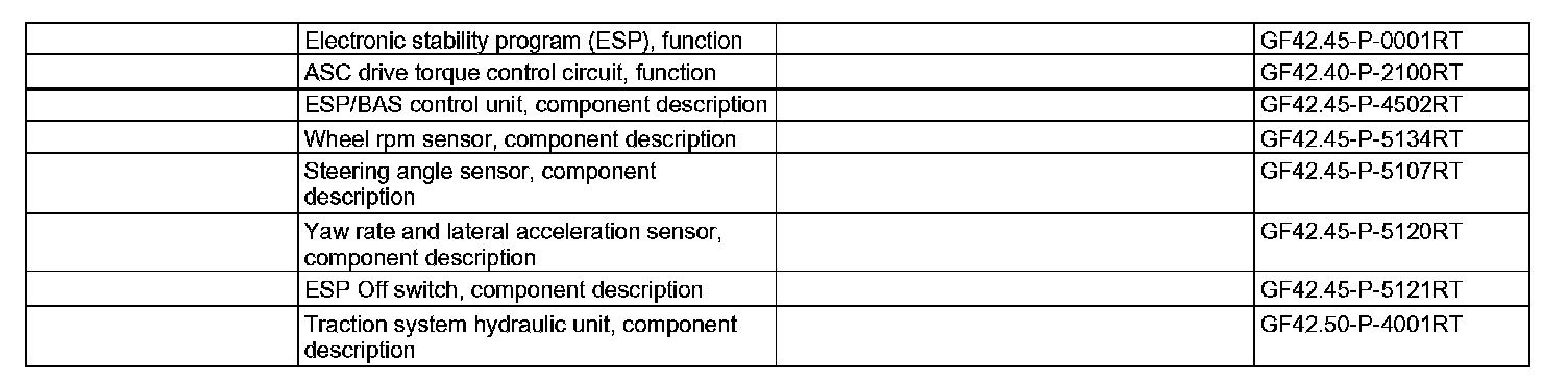 The ESP control unit is continuously informed with the current data on engine torque, accelerator pedal position and transmission ratio. The forces which want to turn the vehicle about the center of gravity are detected via a micro mechanical yaw rate sensor AY pickup.