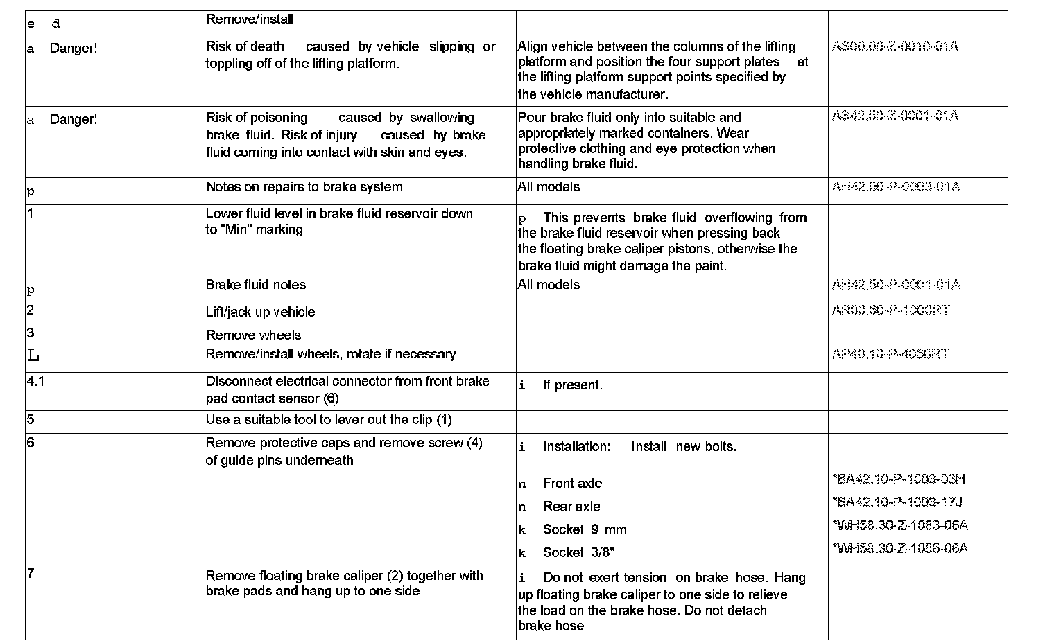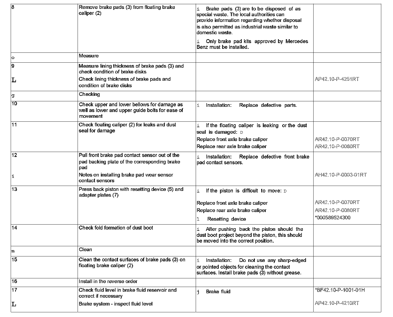 AR42.10-P-0160RT Remove/install brake pad on floating brake caliperComponent Identification: