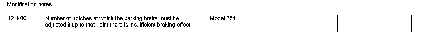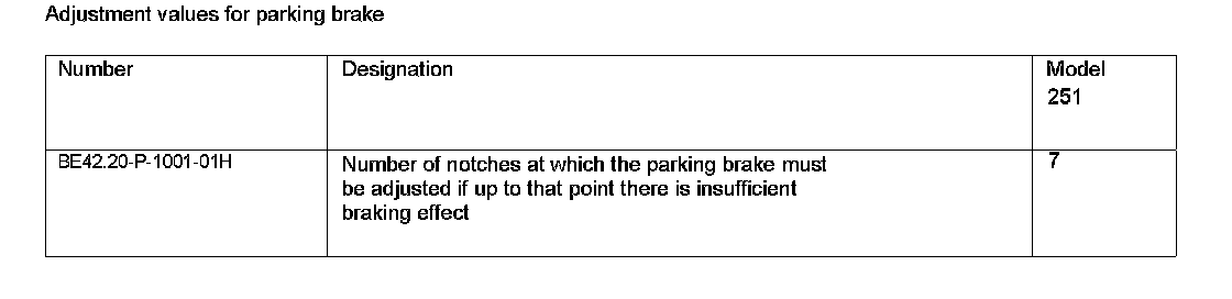 Adjustment Values For Parking Brake: