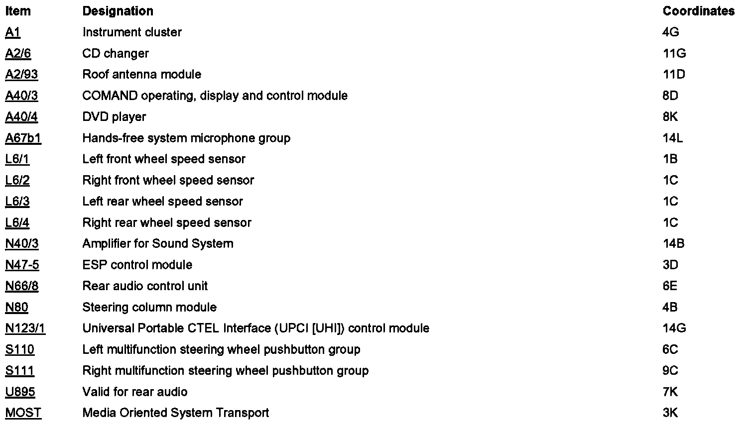 Component Locations: Component Location photographs can be found via their component names at the vehicle level. A - Z Component List