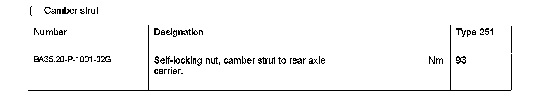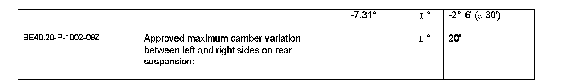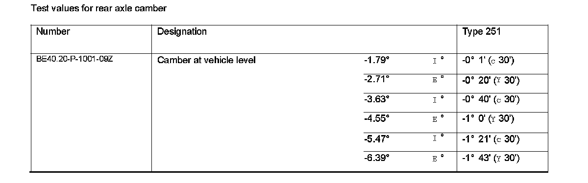 Test values for rear axle camber: