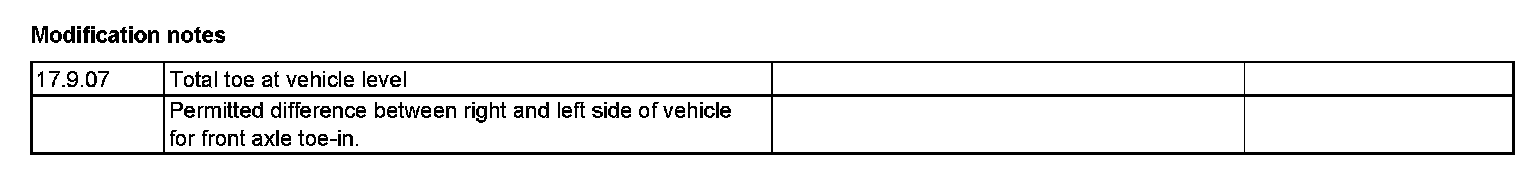 Front Axle Toe Check Values: