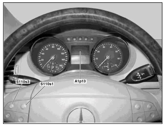 2. Press the system selection button (S110s3) repeatedly until the kilometer reading is displayed in the multifuntion display (A1p13).