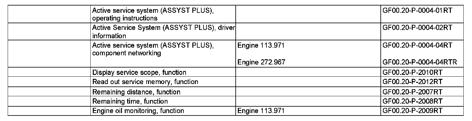 These are input by ASSYST in the central gateway control unit and are used for calculating the service times (only engine 113.971).